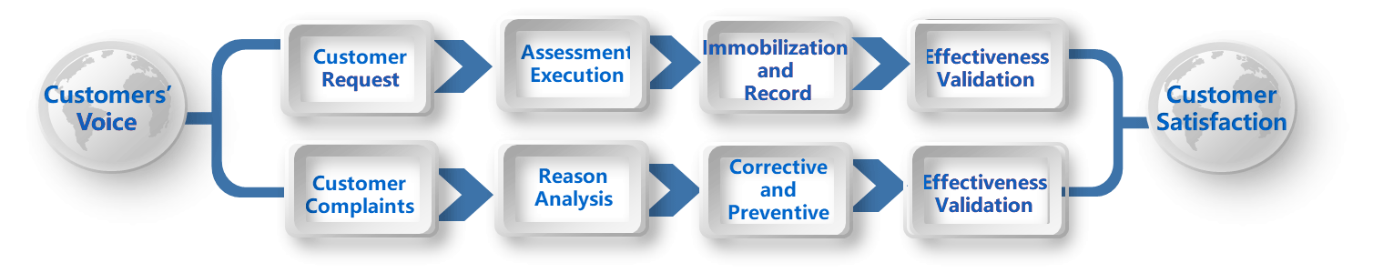 - Implement 24-hour response mechanism for the complaints, carry out close and transparent team cooperation, realize the closed-loop management which has response, track and implementation of each task.